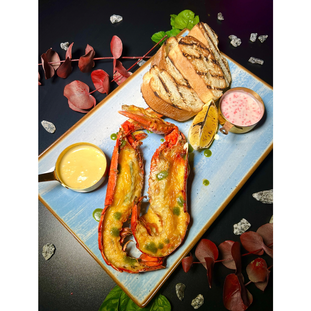 Served with a side of grilled vegetables and sauces: aioli, pepper, barbecue.