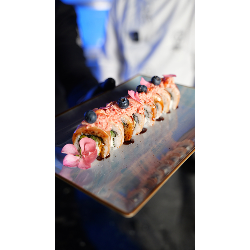 Рис, норі, лосось, вугор, огірок, авокадо, крем сир, ікра масаго, соус васабі, айолі, ікра червона